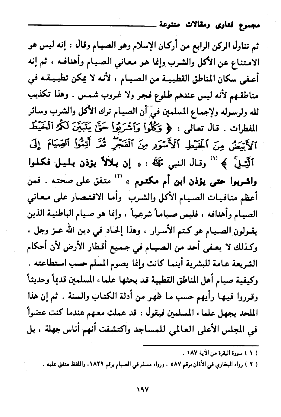 (¬2) رواه البخاري في الأذان برقم 587، ومسلم في الصيام برقم 1829، واللفظ متفق عليه.