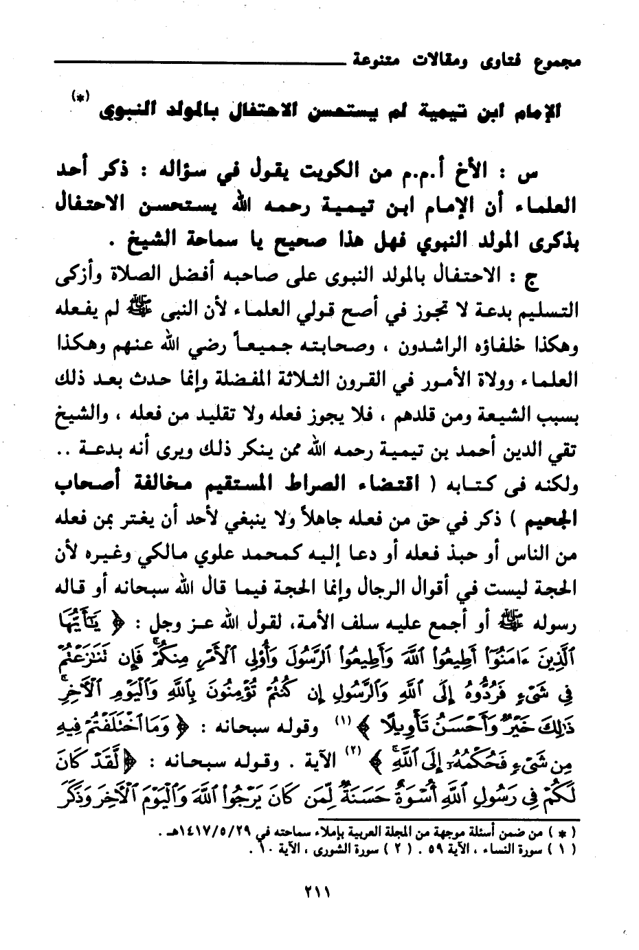 الإمام ابن تيمية لم يستحسن الاحتفال بالمولد النبوي (¬1)