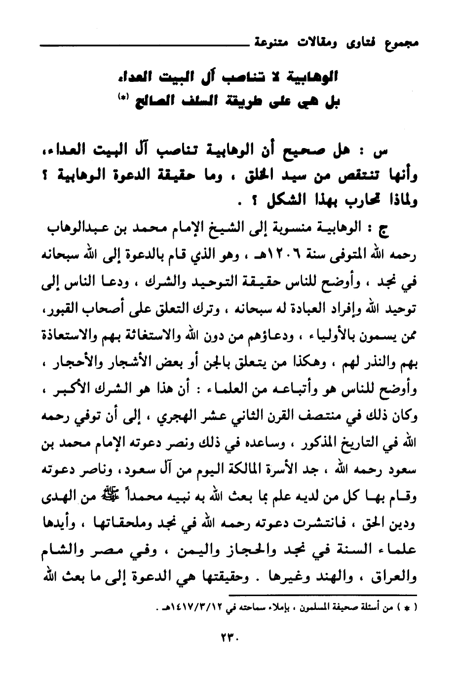 (¬1) من أسئلة صحيفة المسلمون، بإملاء سماحته في 12 \ 3 \ 1417هـ.