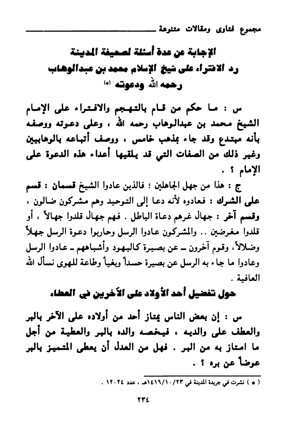 الإجابة عن عدة أسئلة لصحيفة المدينة