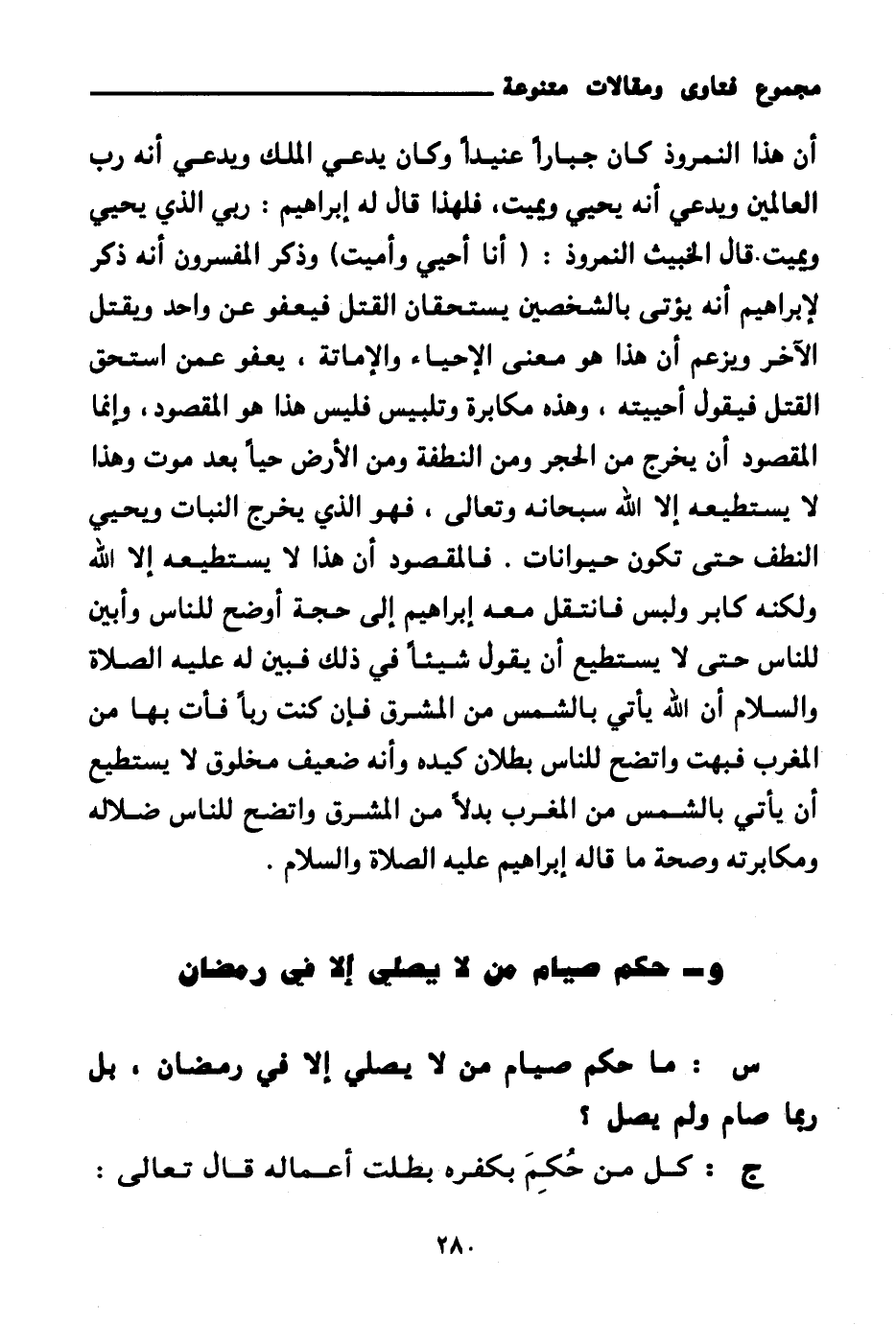 س: ما حكم صيام من لا يصلي إلا في رمضان بل ربما صام ولم يصل؟