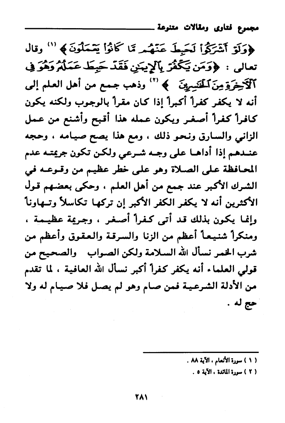{وَلَوْ أَشْرَكُوا لَحَبِطَ عَنْهُمْ مَا كَانُوا يَعْمَلُونَ} (¬1) وقال تعالى: {وَمَنْ يَكْفُرْ بِالْإِيمَانِ فَقَدْ حَبِطَ عَمَلُهُ وَهُوَ فِي الْآخِرَةِ مِنَ الْخَاسِرِينَ} (¬2)