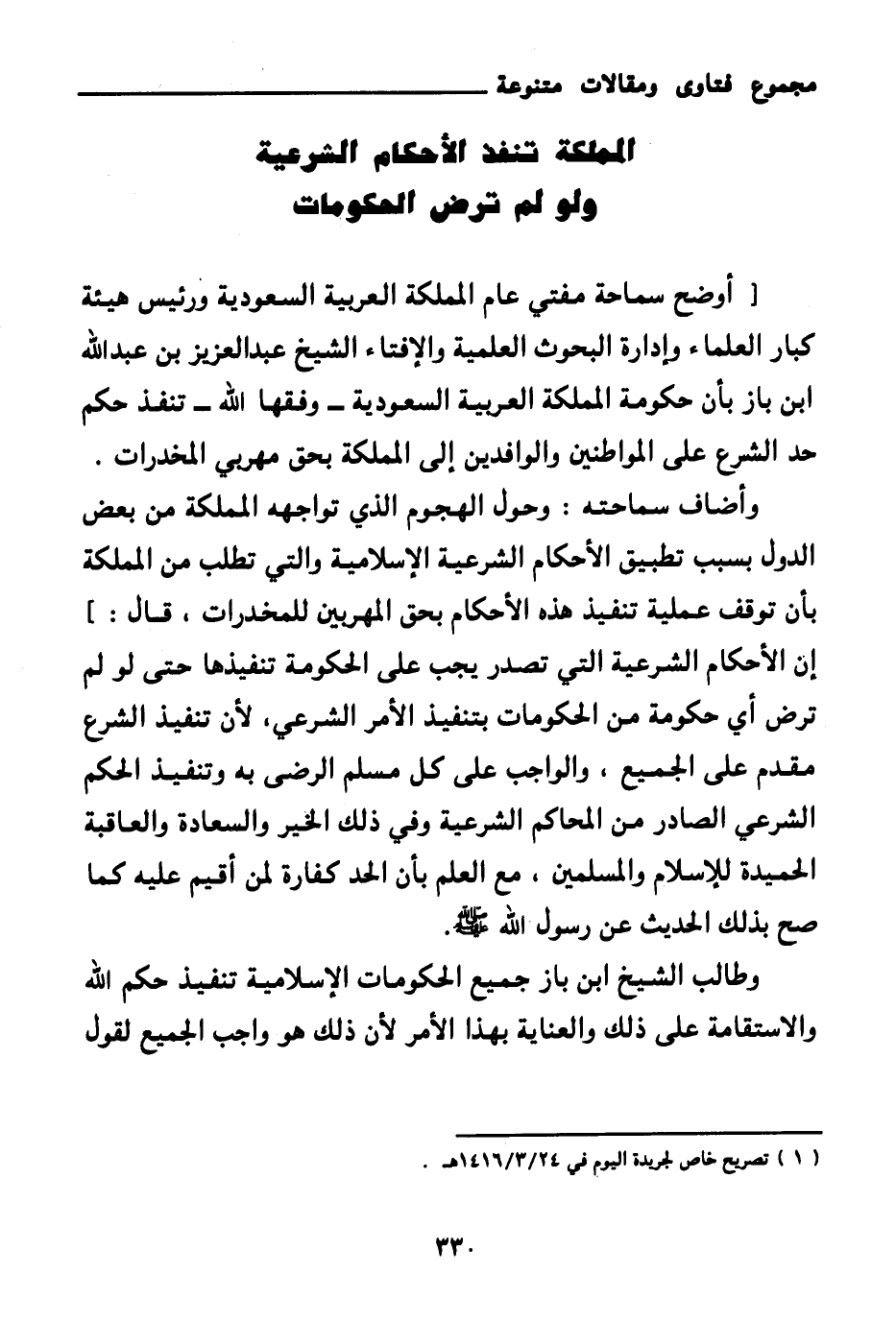 المملكة تنفذ الأحكام الشرعية ولو لم ترض الحكومات (¬1)
