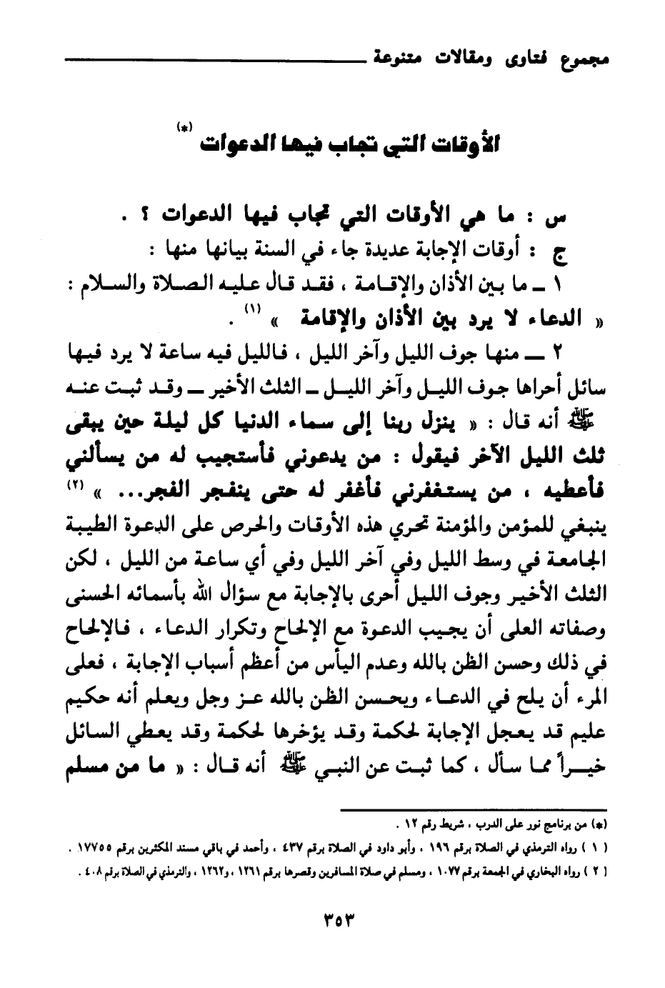 س: ما هي الأوقات التي تجاب فيها الدعوات؟ . .