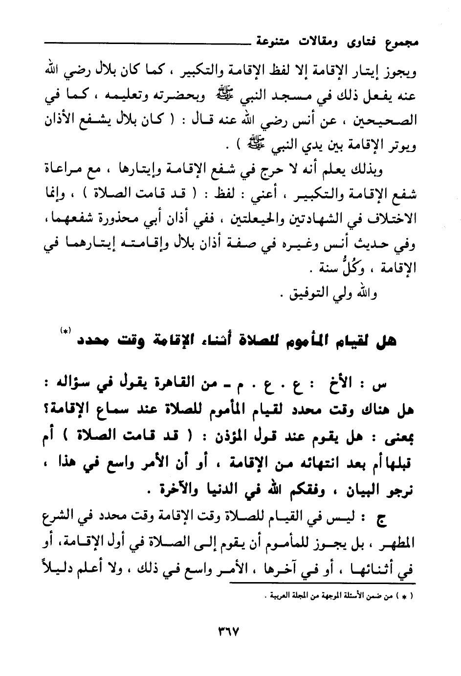 هل لقيام المأموم للصلاة أثناء الإقامة وقت محدد (¬1) .