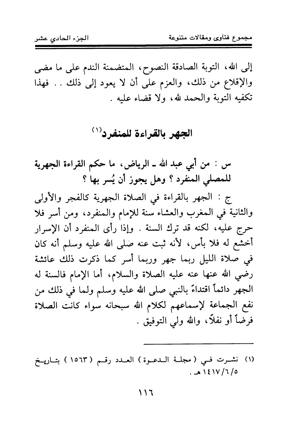 (¬1) نشرت في (كتاب الدعوة) الجزء الثاني، ص (116) .