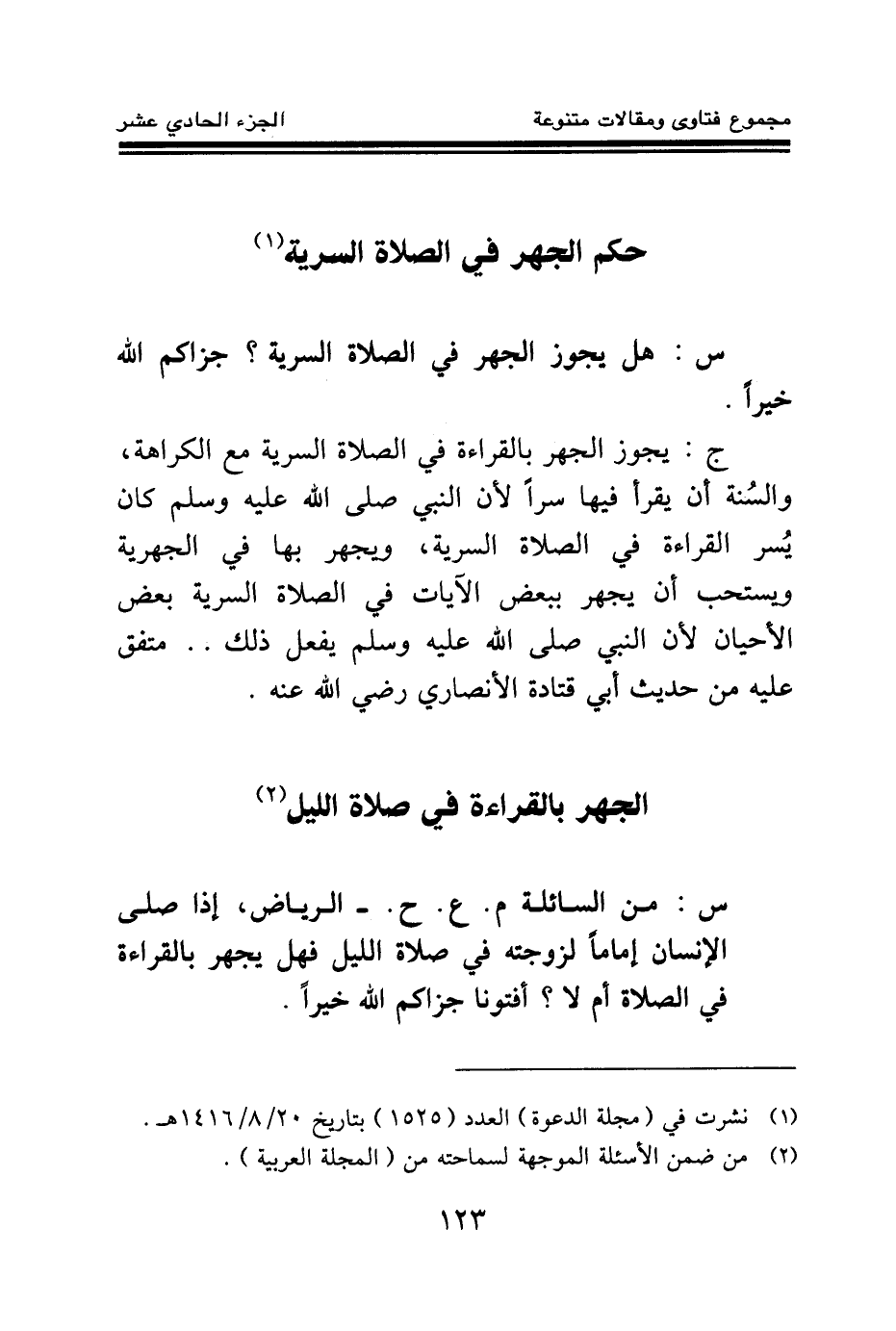 س: هل يجوز الجهر في الصلاة السرية؟ جزاكم الله خيرا.