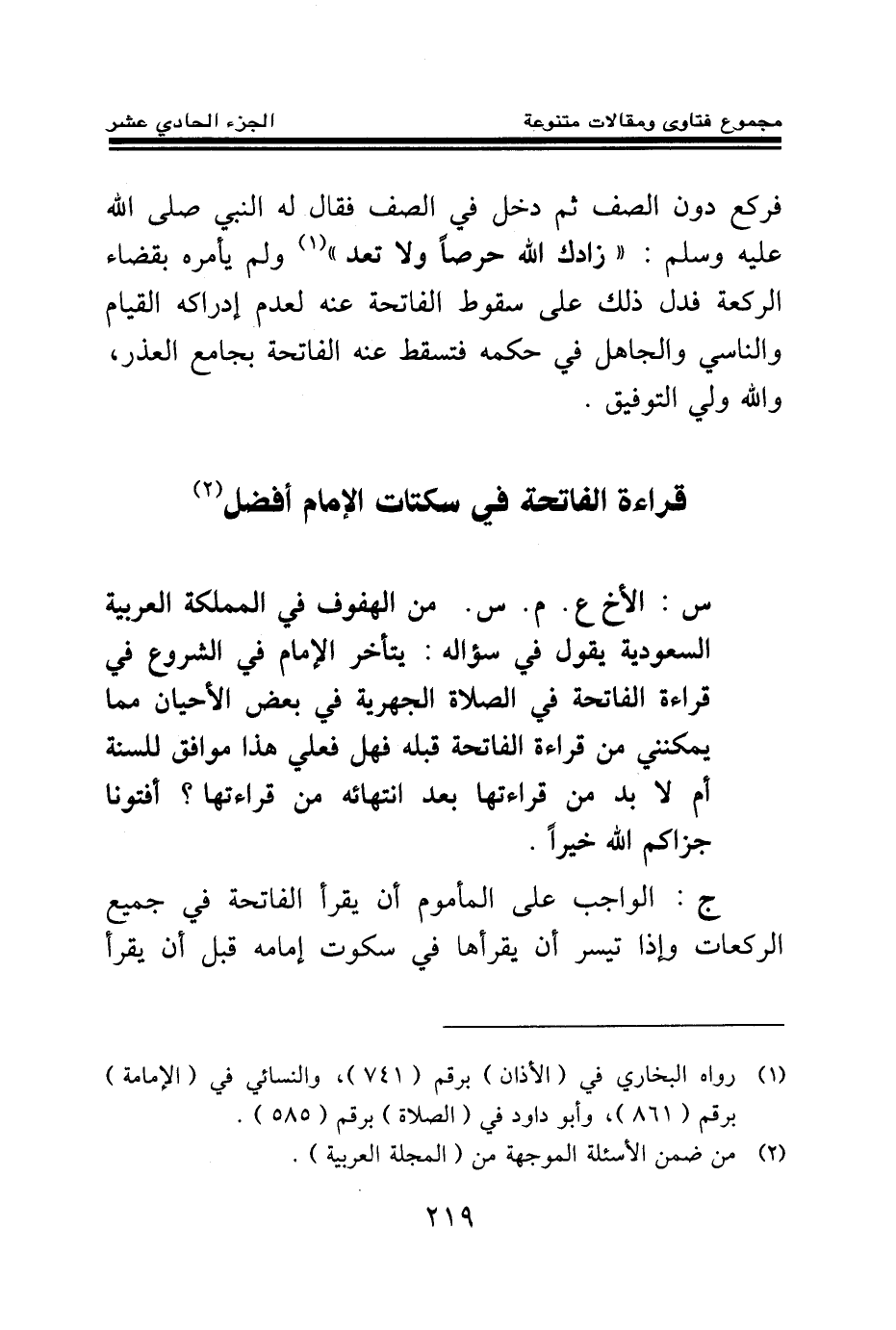قراءة الفاتحة في سكتات الإمام أفضل (¬1) .