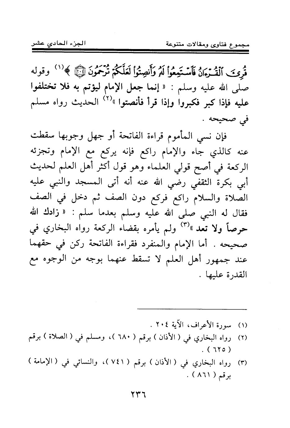 (¬2) رواه البخاري في الأذان برقم (680) ومسلم في الصلاة برقم (625) .