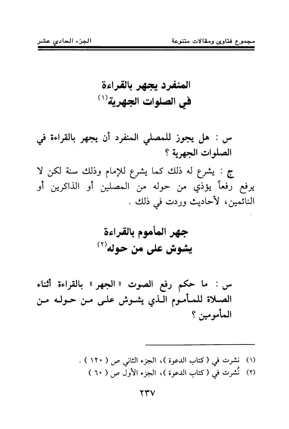 س: هل يجوز للمصلي المنفرد أن يجهر بالقراءة في الصلوات الجهرية؟