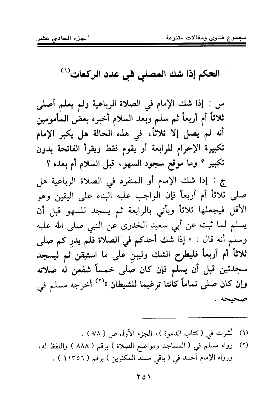 (¬2) صحيح مسلم المساجد ومواضع الصلاة (571) ، سنن الترمذي الصلاة (396) ، سنن النسائي السهو (1238) ، سنن أبو داود الصلاة (1024) ، سنن ابن ماجه إقامة الصلاة والسنة فيها (1210) ، مسند أحمد بن حنبل (3/83) ، موطأ مالك النداء للصلاة (214) ، سنن الدارمي الصلاة (1495) .