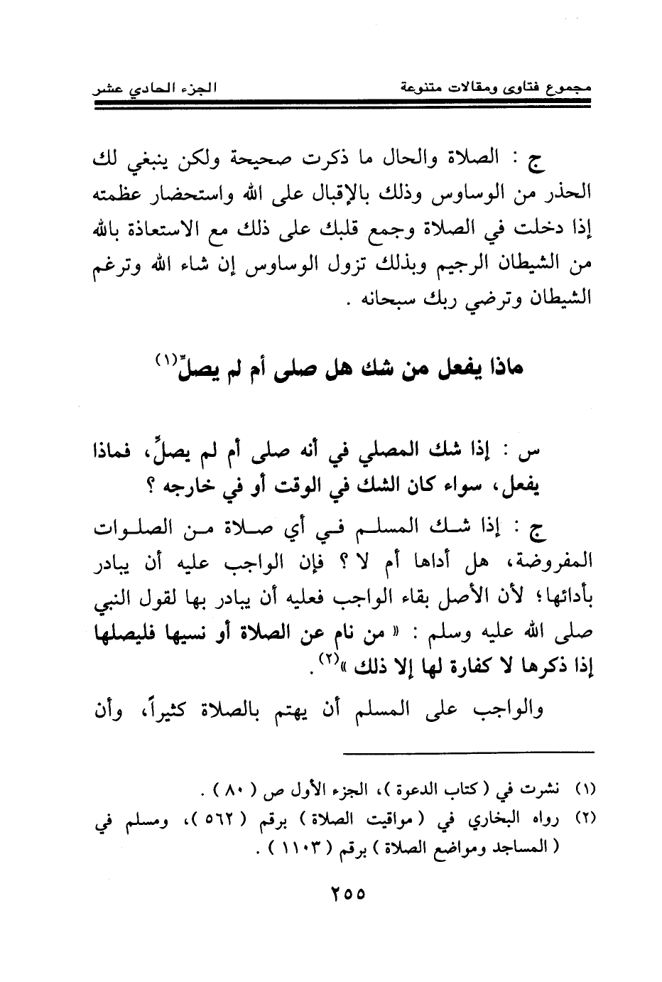 ماذا يفعل من شك هل صلى أم لم يصل (¬1)