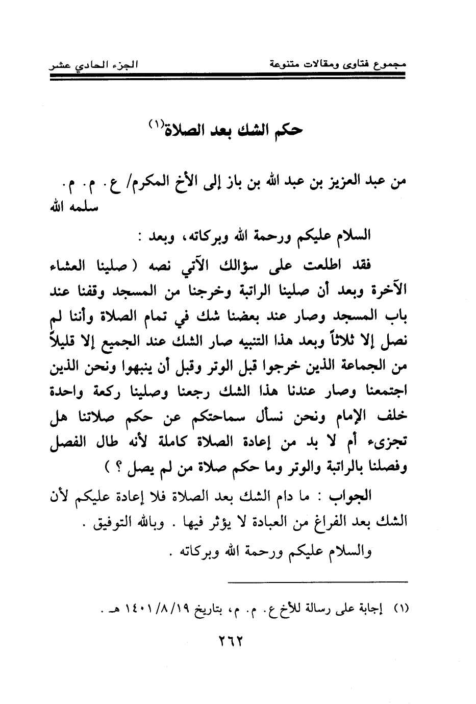 من عبد العزيز بن عبد الله بن باز إلى الأخ المكرم\ ع. م. م. سلمه الله.