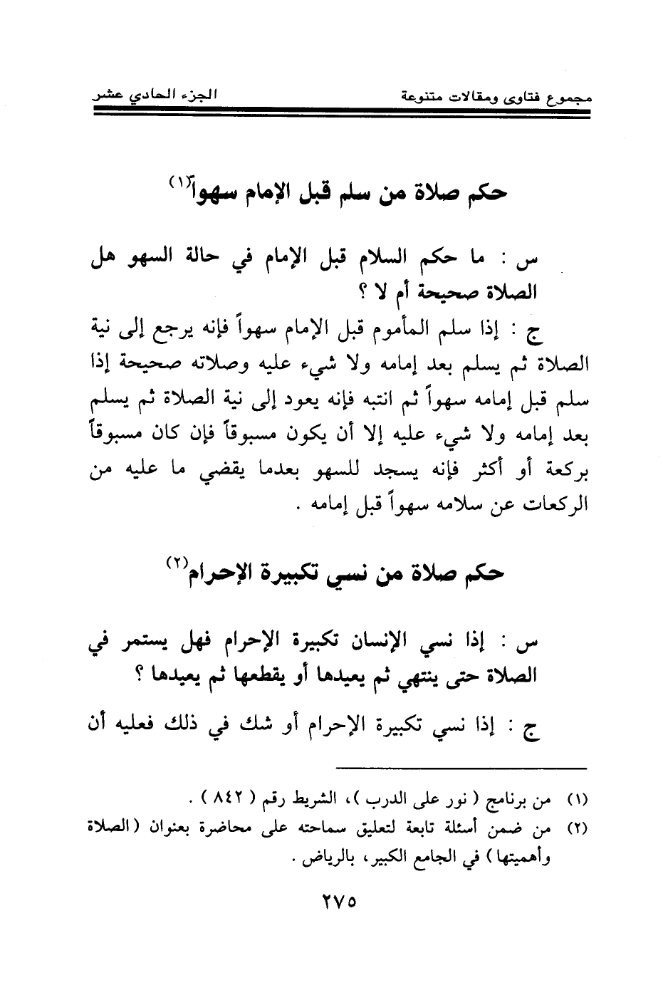 س: ما حكم السلام قبل الإمام في حالة السهو هل الصلاة صحيحة أم لا؟ .