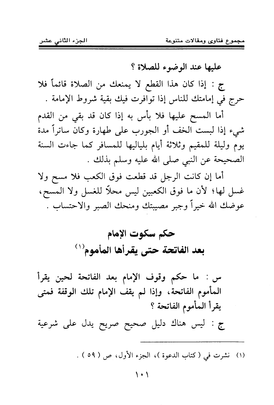 (¬1) نشرت في (كتاب الدعوة) ، الجزء الأول، ص (59) .