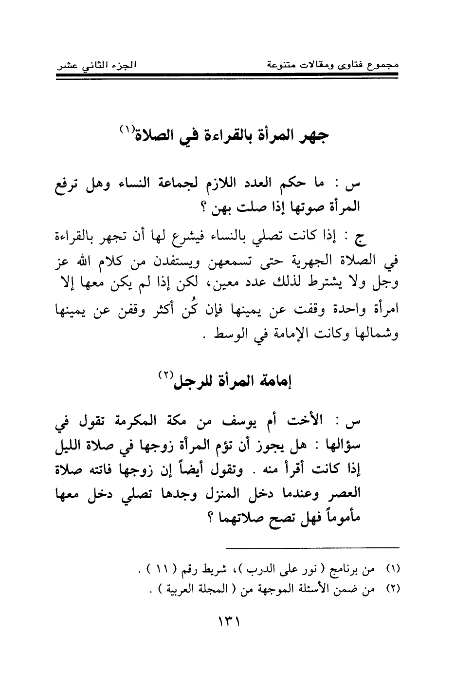 جهر المرأة بالقراءة في الصلاة (¬1)