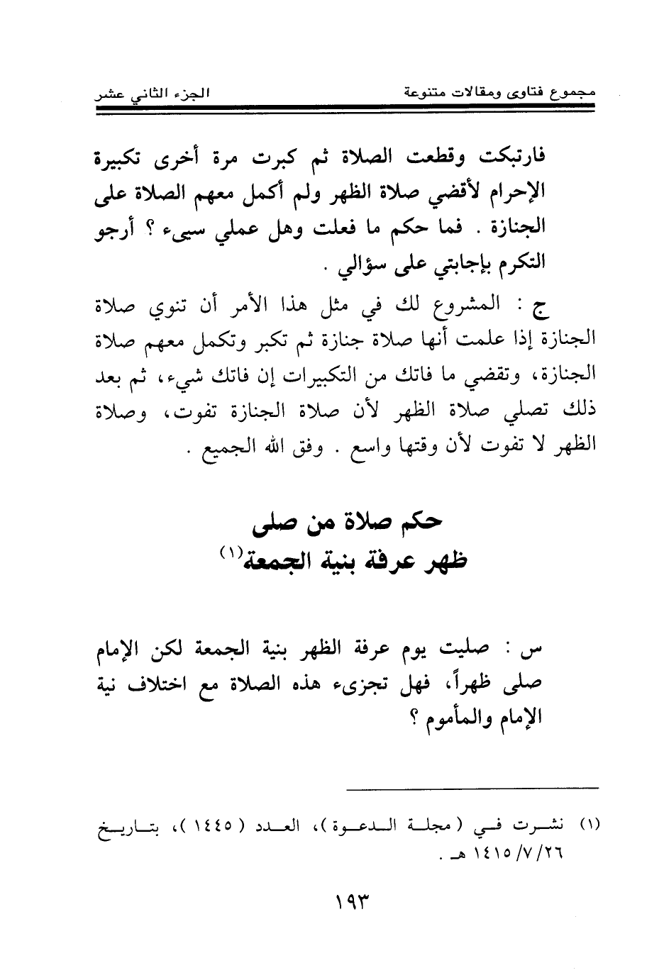س: صليت يوم عرفة الظهر بنية الجمعة لكن الإمام صلى ظهرا، فهل تجزئ هذه الصلاة مع اختلاف نية الإمام والمأموم؟