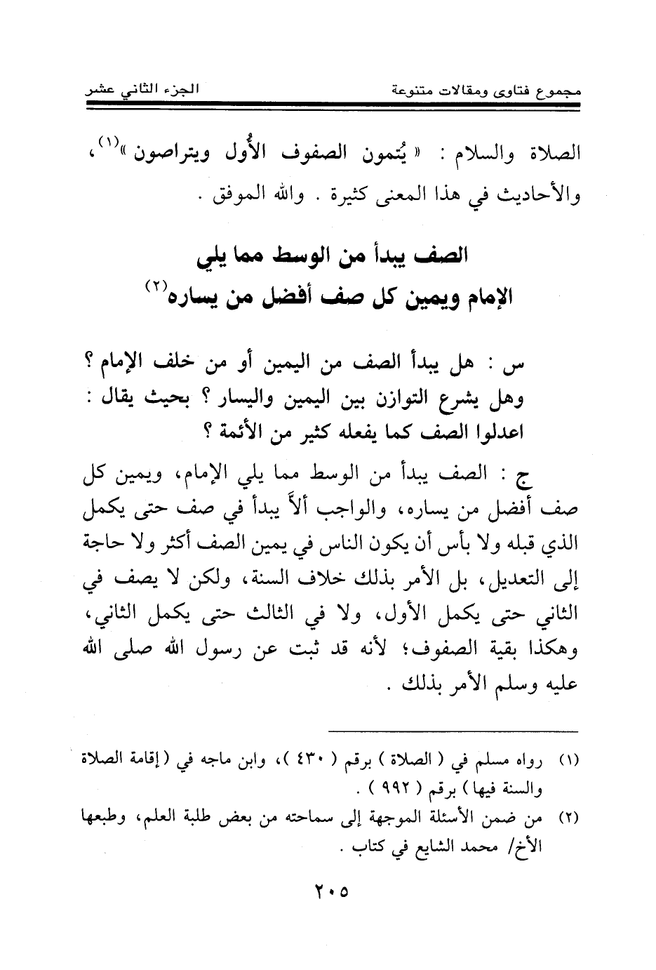 الصلاة والسلام يتمون الصفوف الأول ويتراصون (¬1) » ، والأحاديث في هذا المعنى كثيرة. والله الموفق.