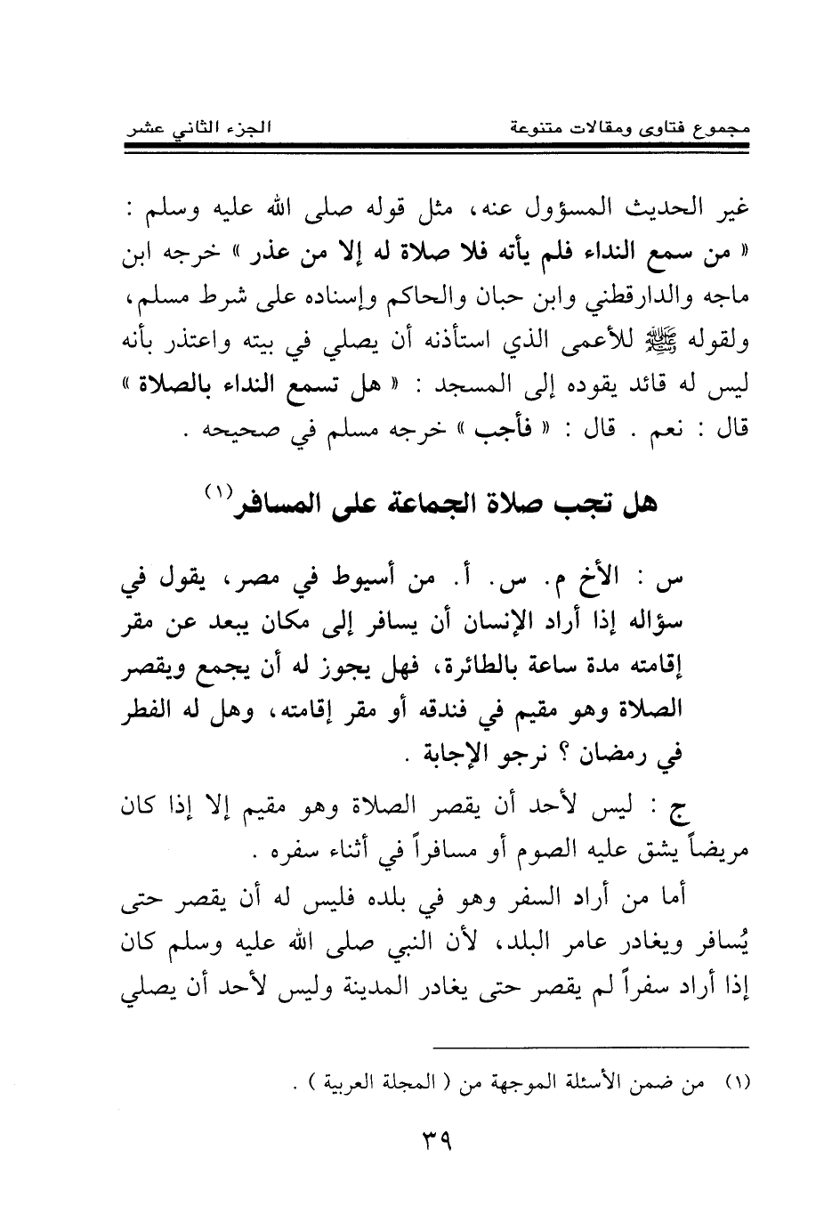 هل تجب صلاة الجماعة على المسافر (¬1)