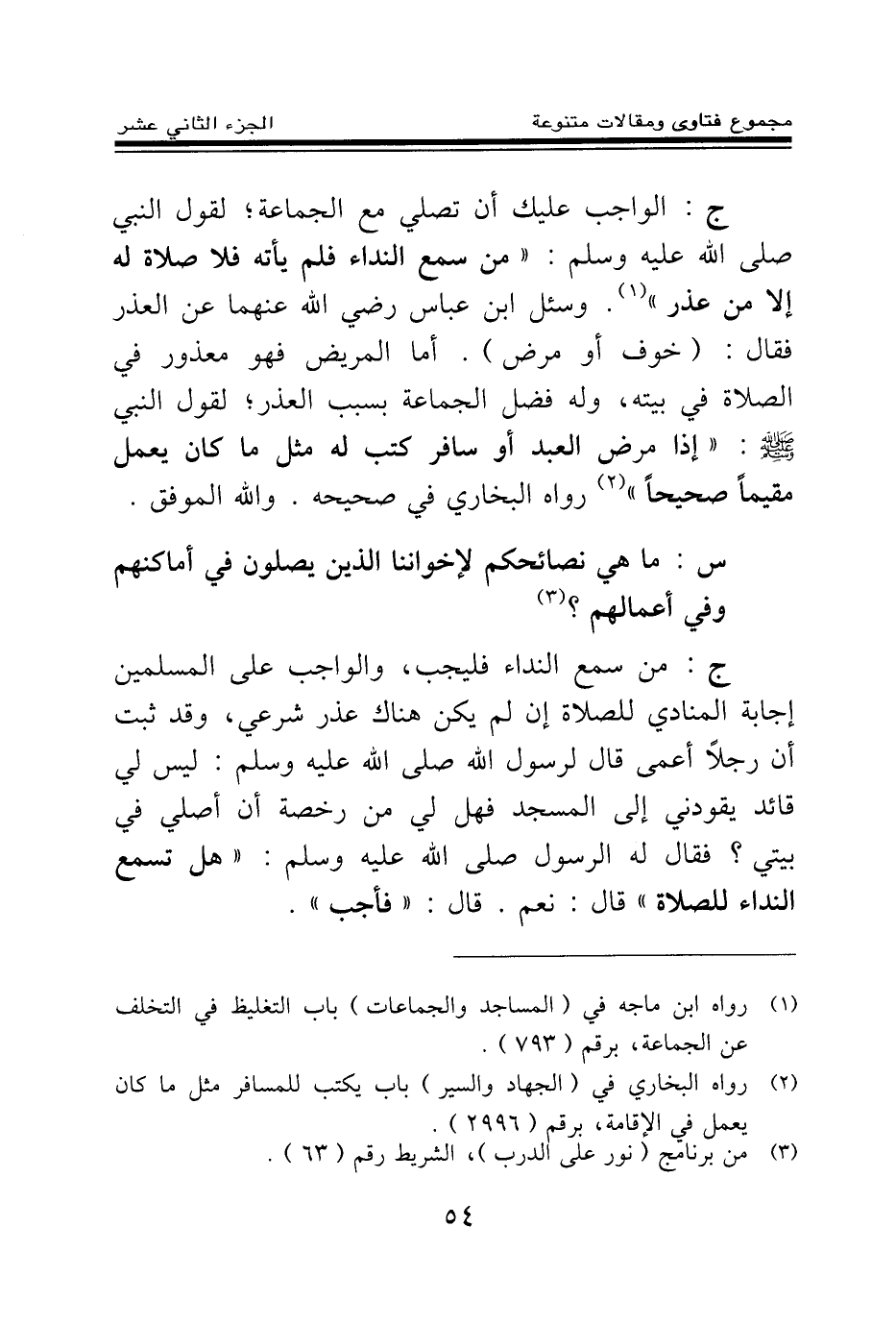 س: ما هي نصائحكم لإخواننا الذين يصلون في أماكنهم وفي أعمالهم؟ (¬1)