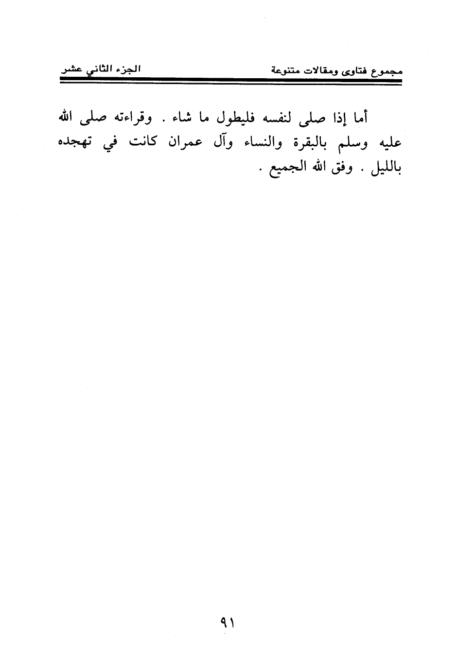 أما إذا صلى لنفسه فليطول ما شاء. وقراءته صلى الله عليه وسلم بالبقرة والنساء وآل عمران كانت في تهجده بالليل. وفق الله الجميع.
