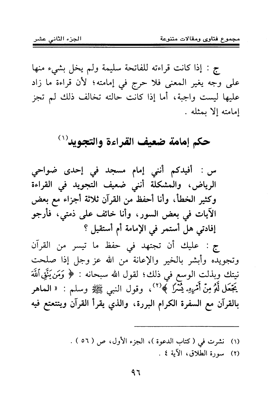 حكم إمامة ضعيف القراءة والتجويد (¬1)