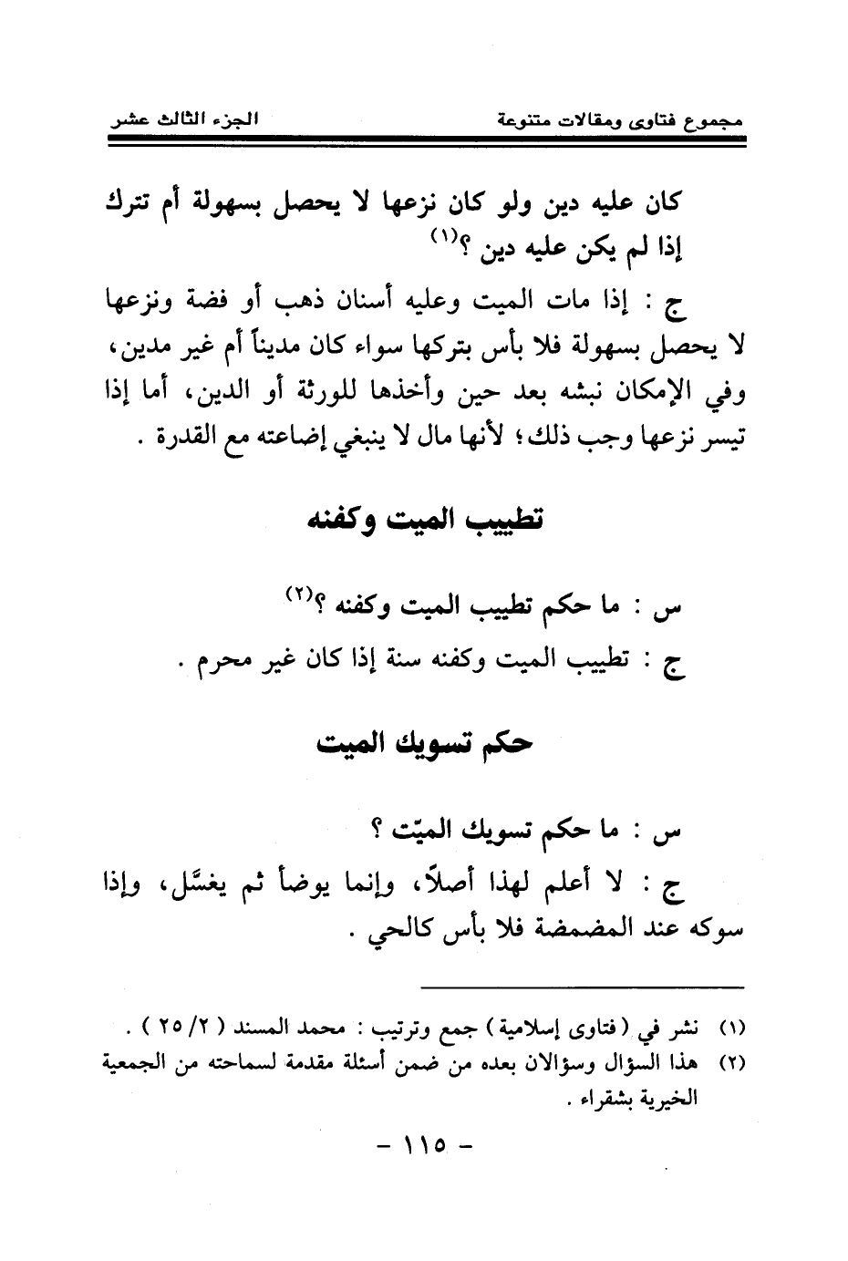 (¬1) نشر في (فتاوى إسلامية) جمع وترتيب: محمد المسند (2 \ 25) .