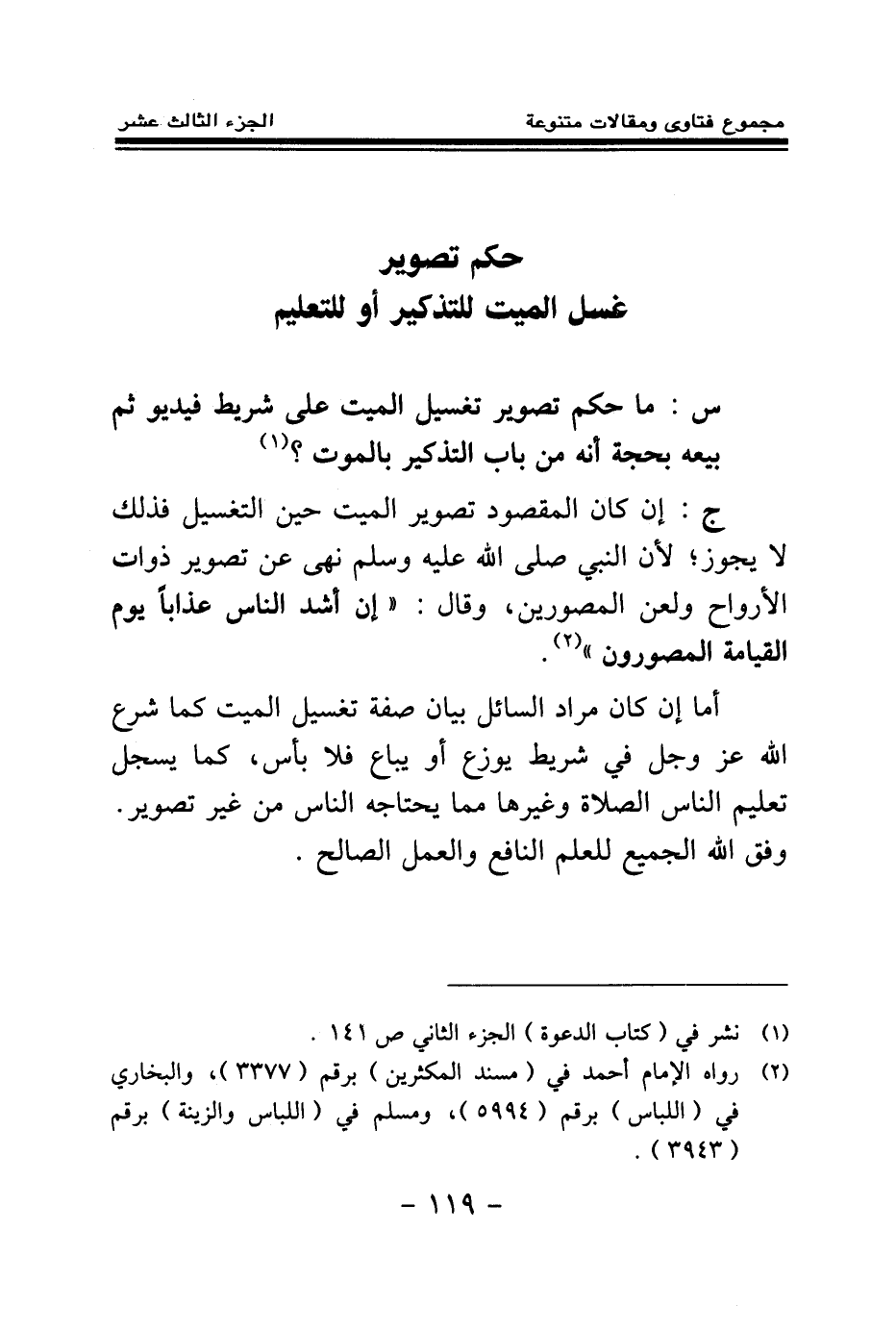 ج: إن كان المقصود تصوير الميت حين التغسيل فذلك لا يجوز؛ لأن النبي صلى الله عليه وسلم نهى عن تصوير ذوات الأرواح ولعن المصورين، وقال: «إن أشد الناس عذابا يوم القيامة المصورون (¬2) » .