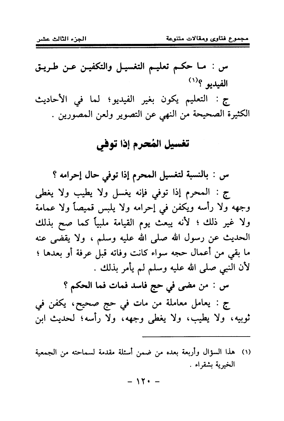 س: ما حكم تعليم التغسيل والتكفين عن طريق الفيديو؟ (¬1) .