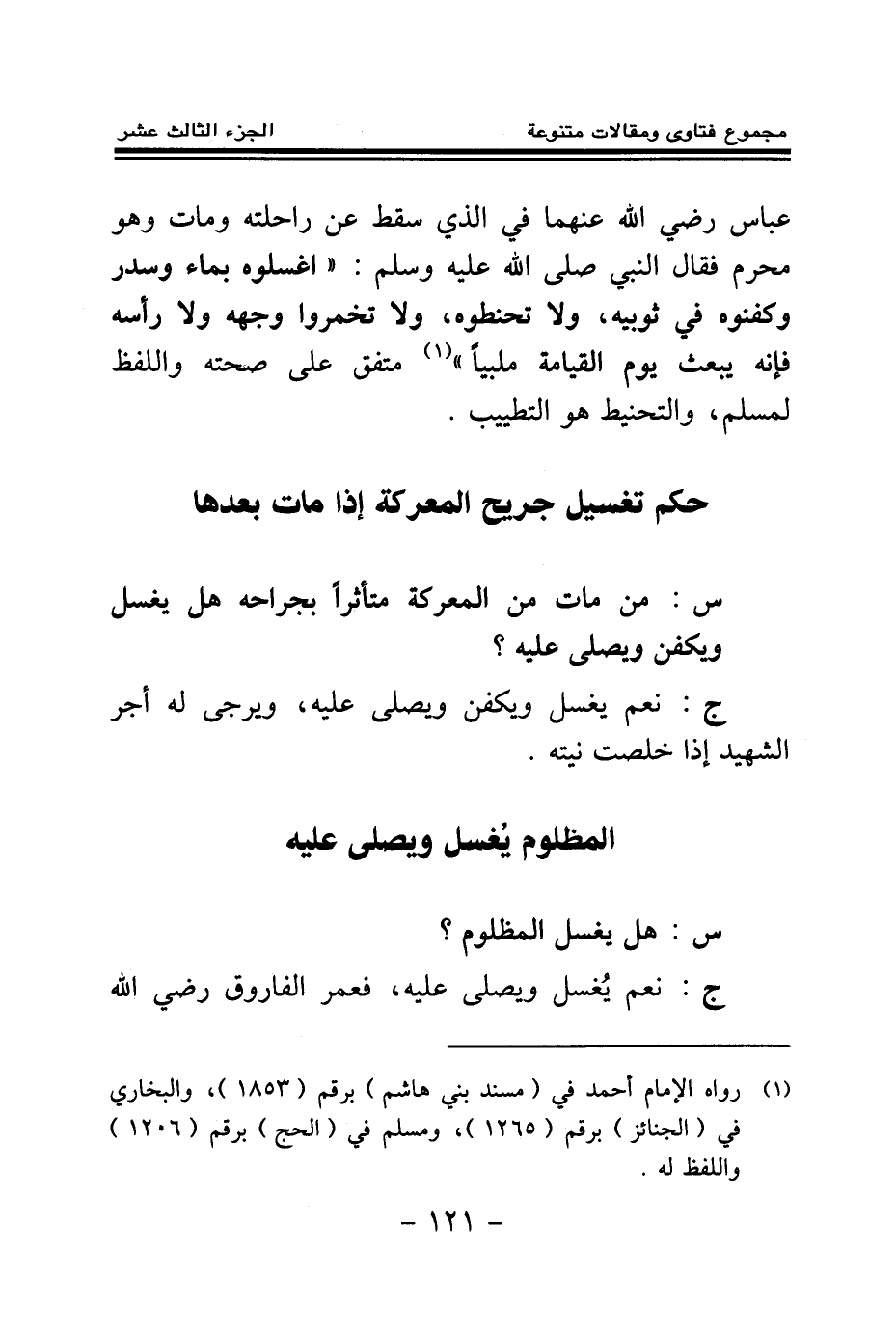 حكم تغسيل جريح المعركة إذا مات بعدها