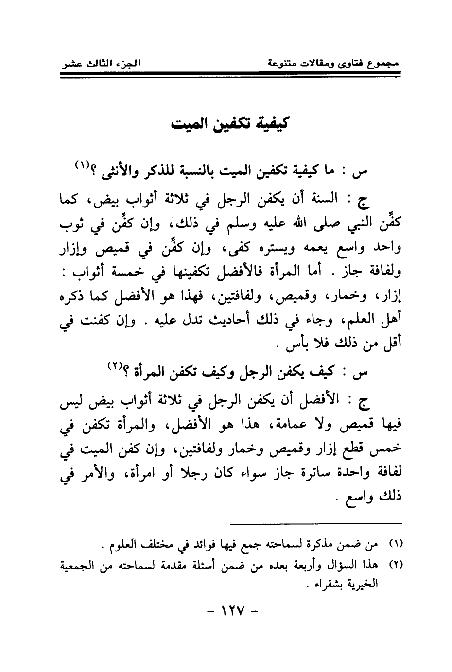 س: كيف يكفن الرجل وكيف تكفن المرأة؟ (¬2)