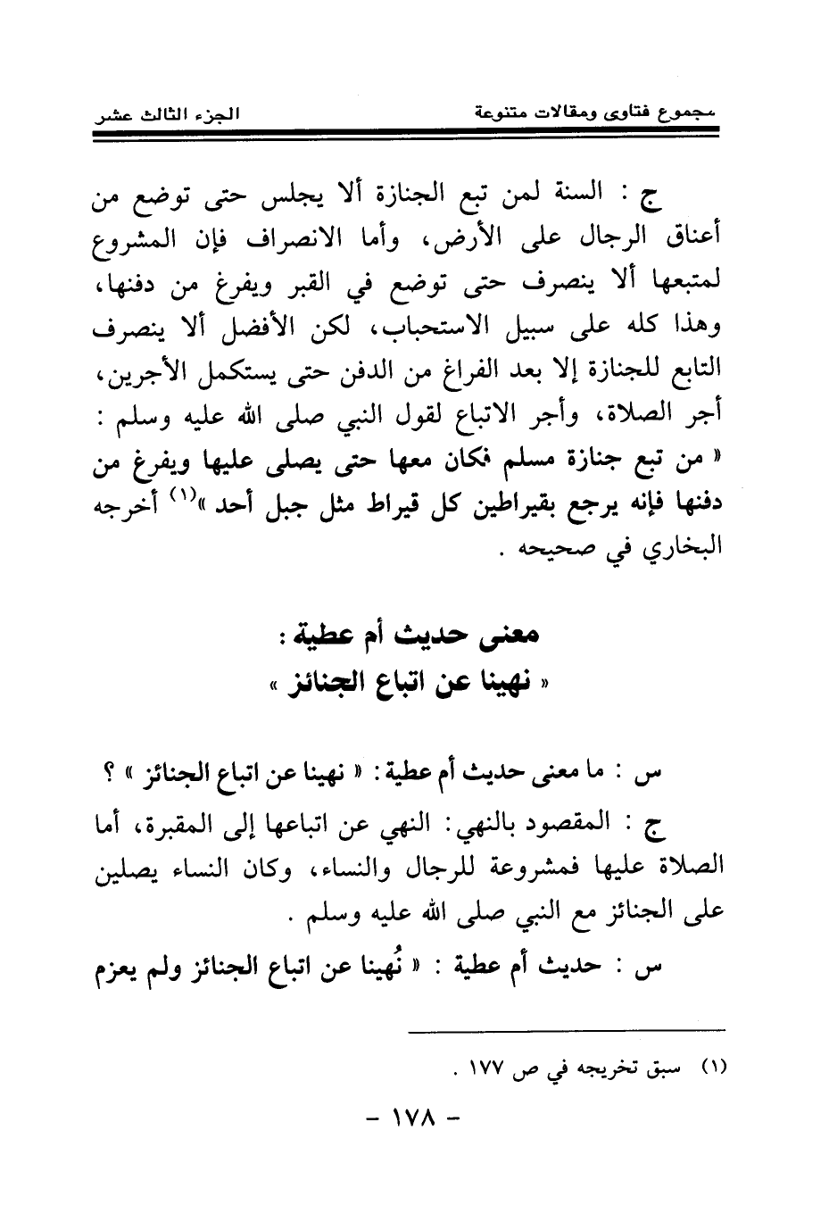 س: ما معنى «حديث أم عطية: "نهينا عن اتباع الجنائز (¬1) » ؟