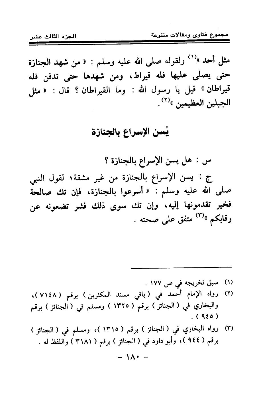 (¬2) رواه الإمام أحمد في (باقي مسند المكثرين) برقم (7148) ، والبخاري في (الجنائز) برقم (1325) ، ومسلم في (الجنائز) برقم (945) .