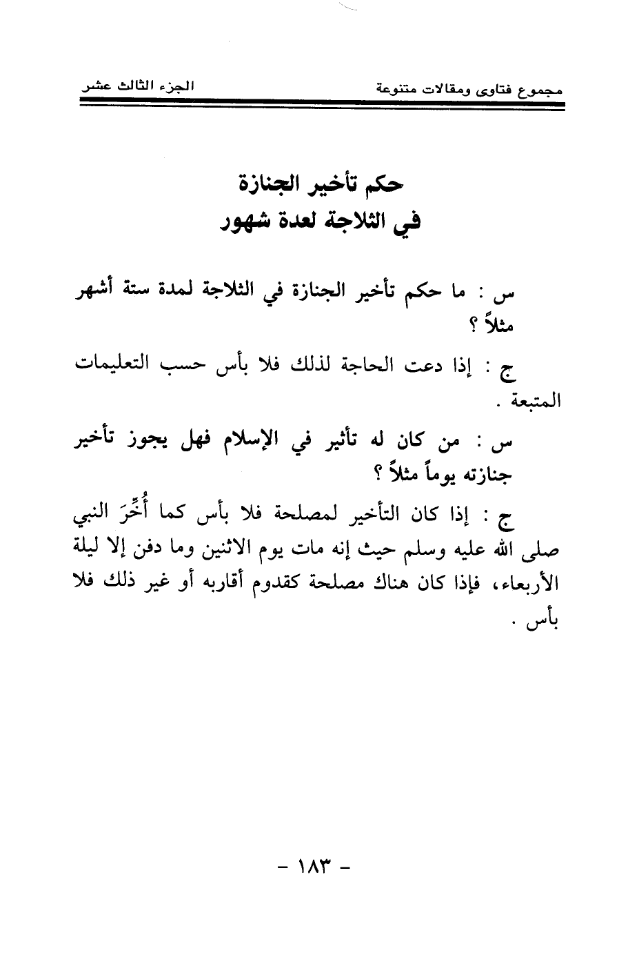 س: ما حكم تأخير الجنازة في الثلاجة لمدة ستة أشهر مثلا؟
