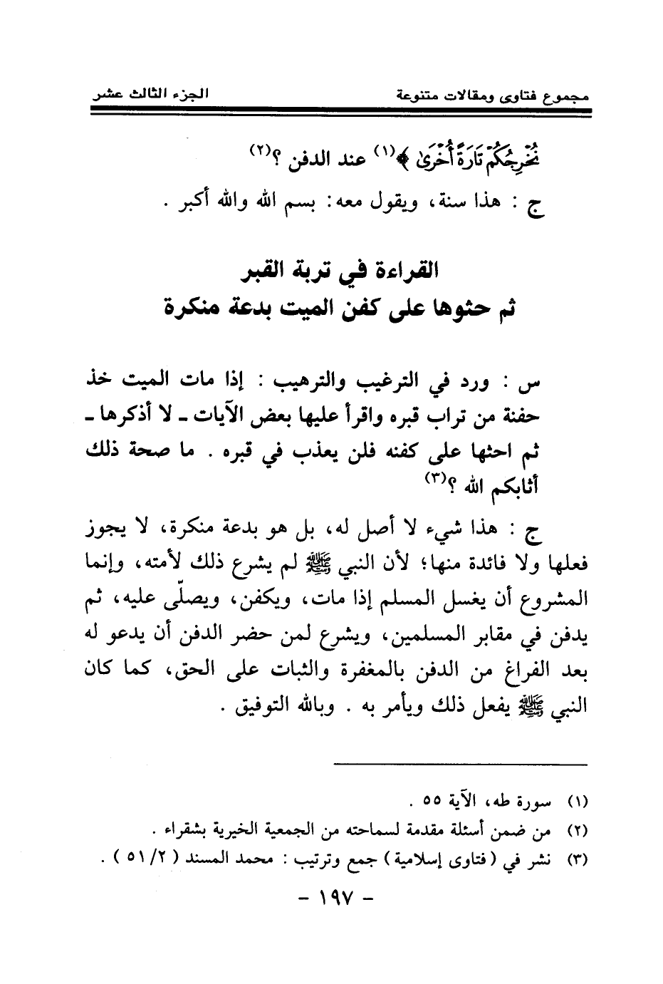 (¬1) نشر في (فتاوى إسلامية) جمع وترتيب: محمد المسند (2 \ 51) .