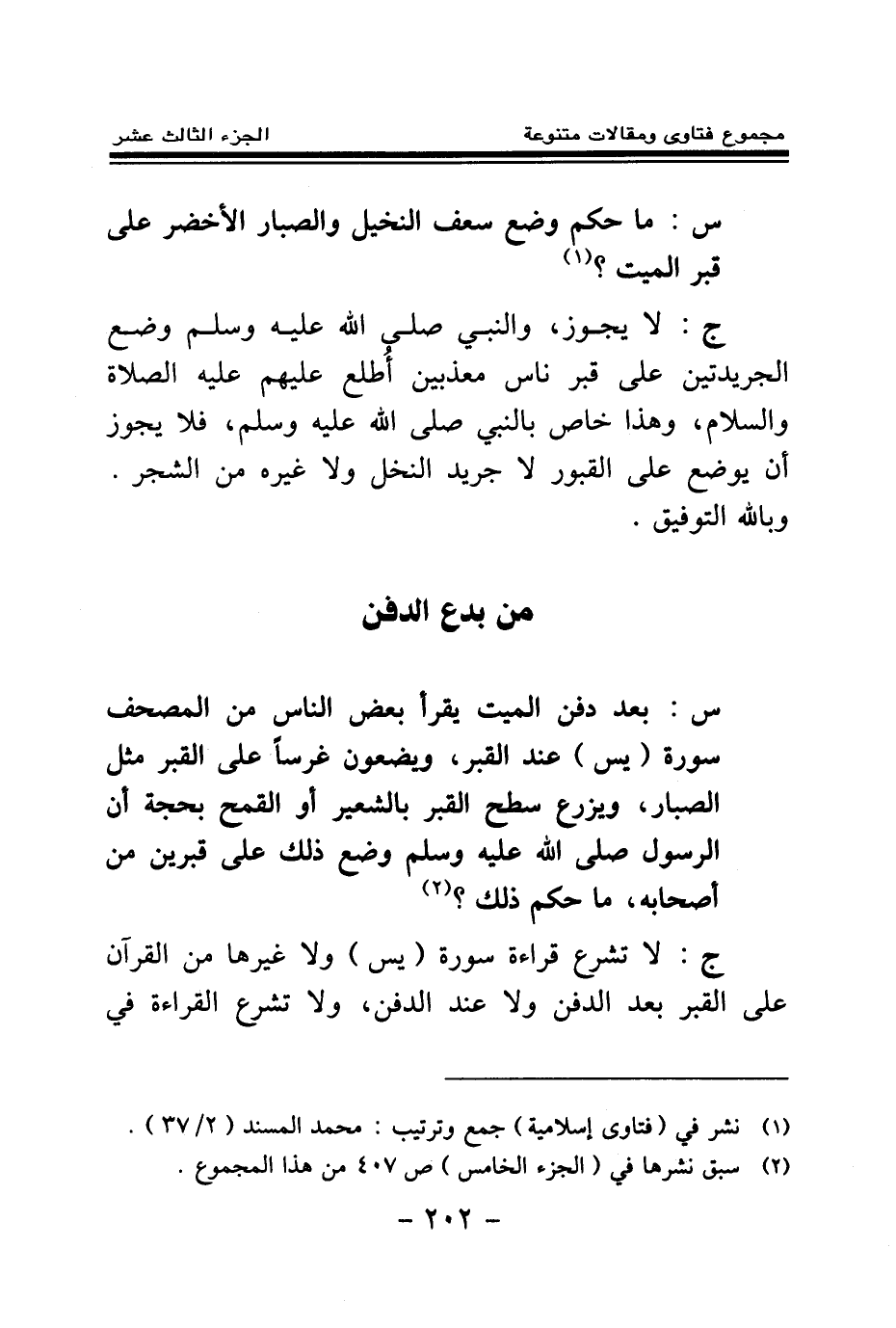 (¬1) نشر في (فتاوى إسلامية) جمع وترتيب: محمد المسند (2 \ 37) .