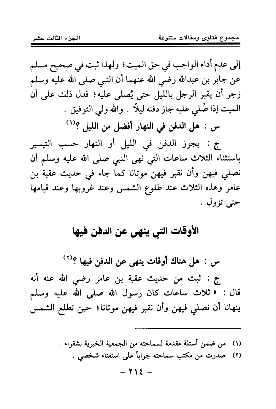 س: هل الدفن في النهار أفضل من الليل؟ (¬2) . .