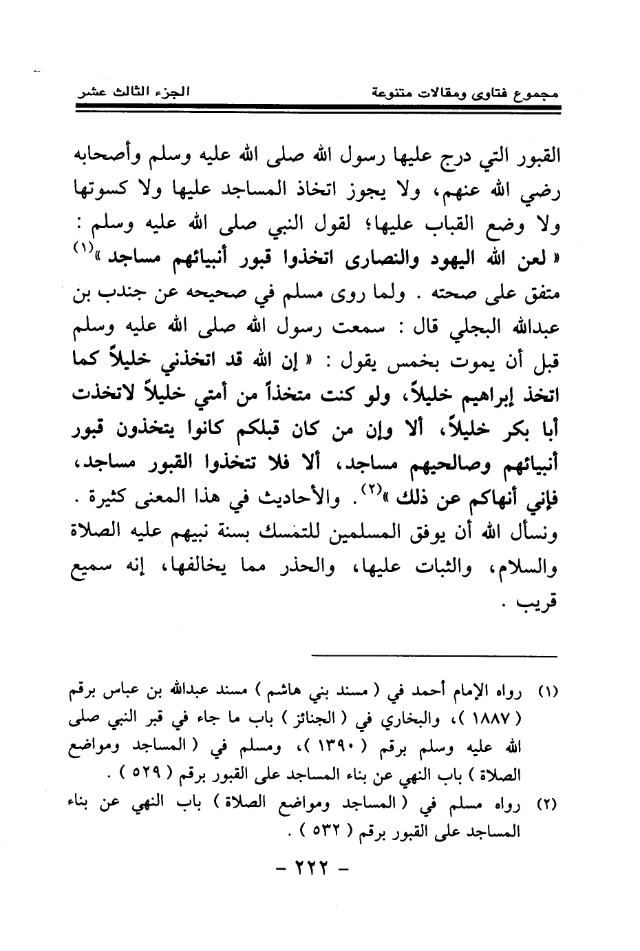 (¬2) رواه مسلم في (المساجد ومواضع الصلاة) باب النهي عن بناء المساجد على القبور برقم (532) .