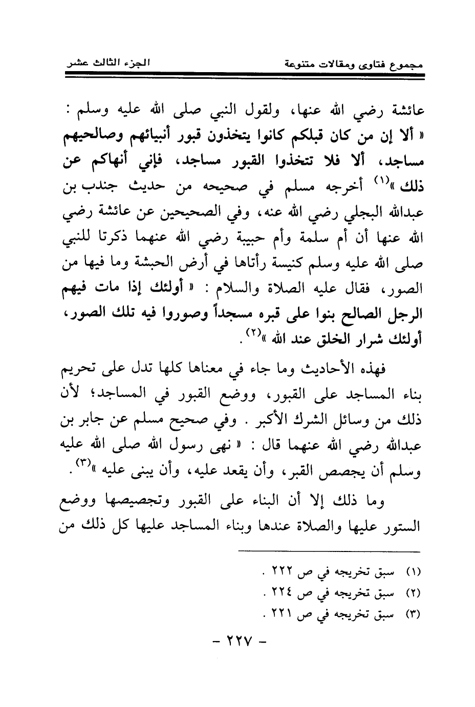 (¬1) رواه مسلم في (المساجد ومواضع الصلاة) باب النهي عن بناء المساجد على القبور برقم (532) .