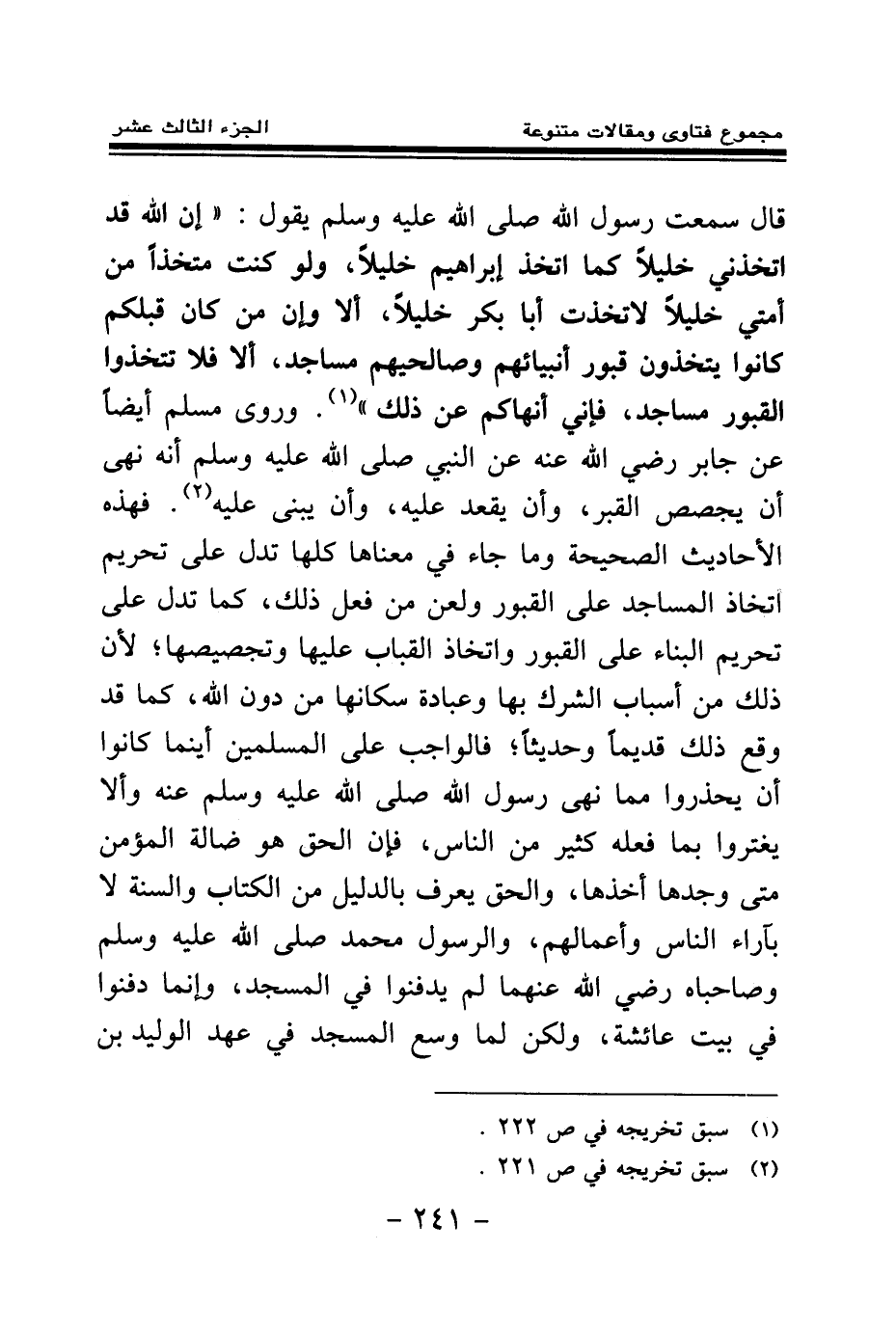 (¬1) رواه مسلم في (المساجد ومواضع الصلاة) باب النهي عن بناء المساجد على القبور برقم (532) .