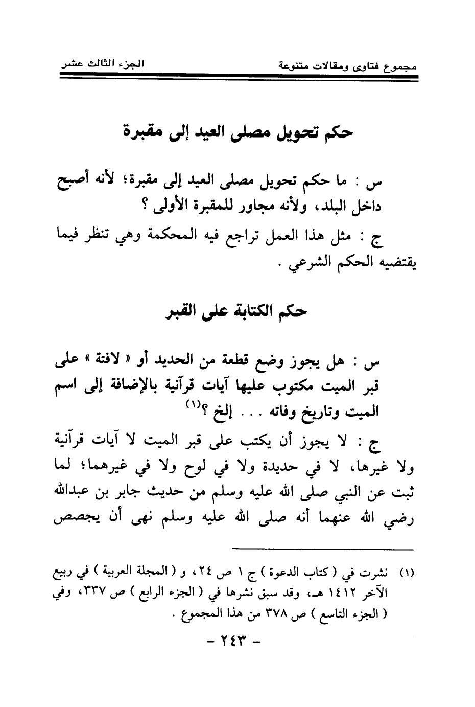س: ما حكم تحويل مصلى العيد إلى مقبرة؛ لأنه أصبح داخل البلد، ولأنه مجاور للمقبرة الأولى؟