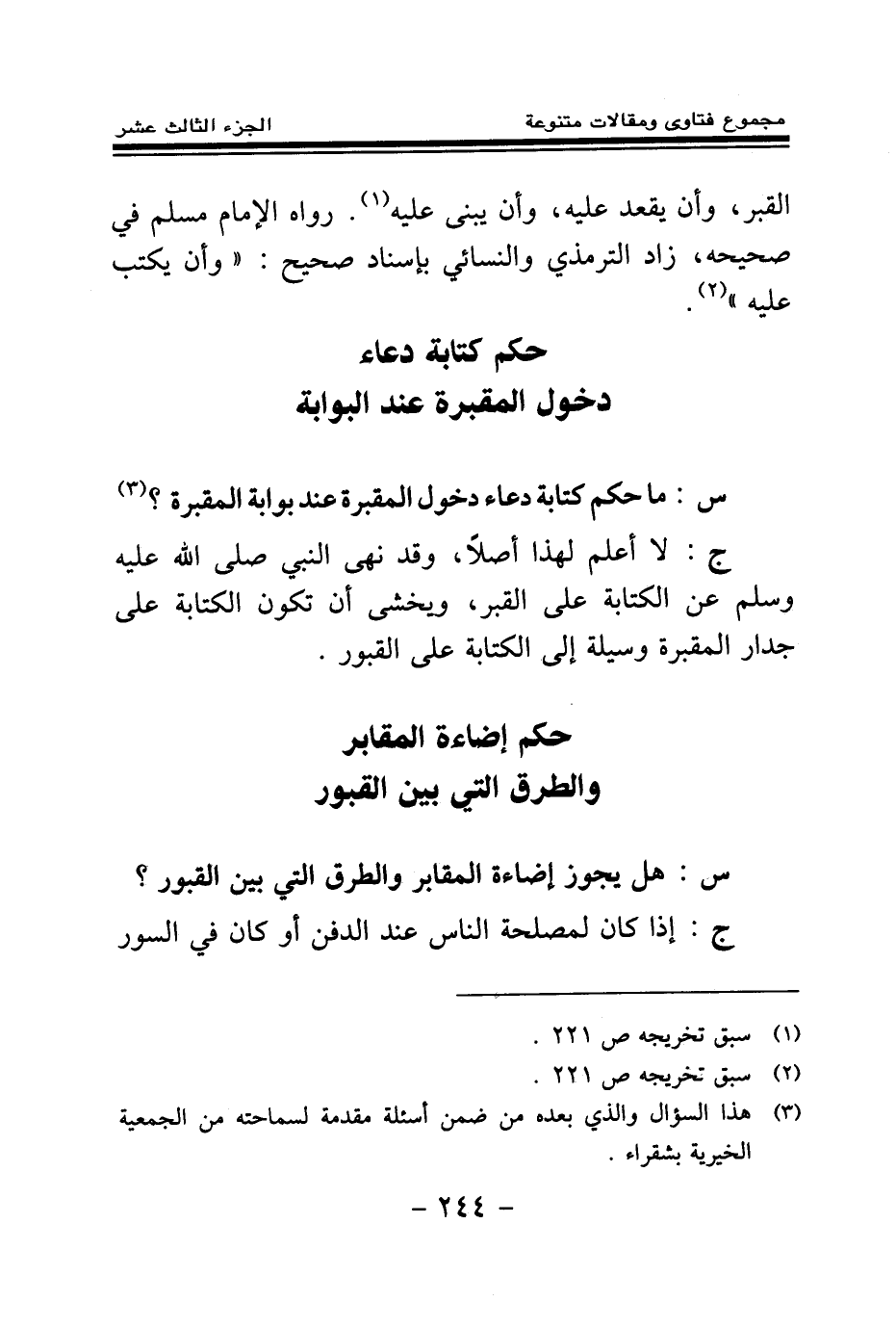 س: ما حكم كتابة دعاء دخول المقبرة عند بوابة المقبرة؟ (¬1) .