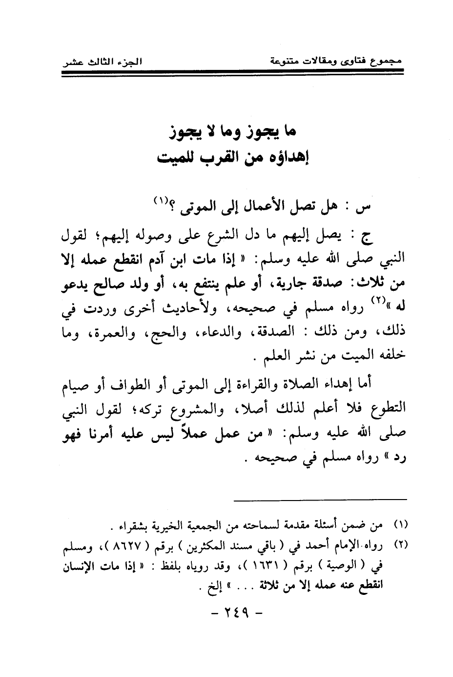 س: هل تصل الأعمال إلى الموتى؟ (¬1) .