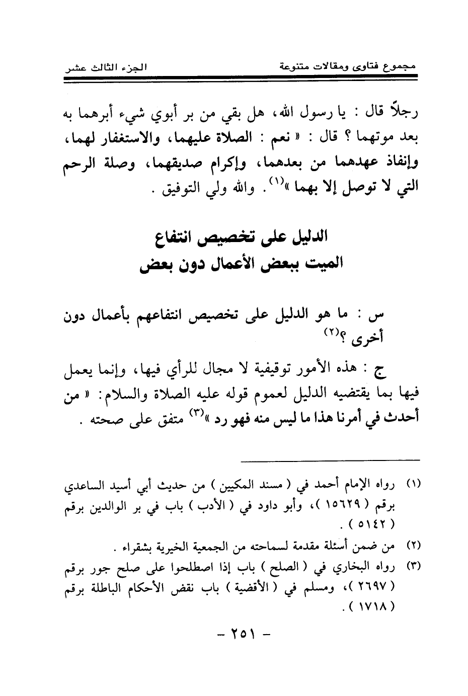 الدليل على تخصيص انتفاع الميت ببعض الأعمال دون بعض