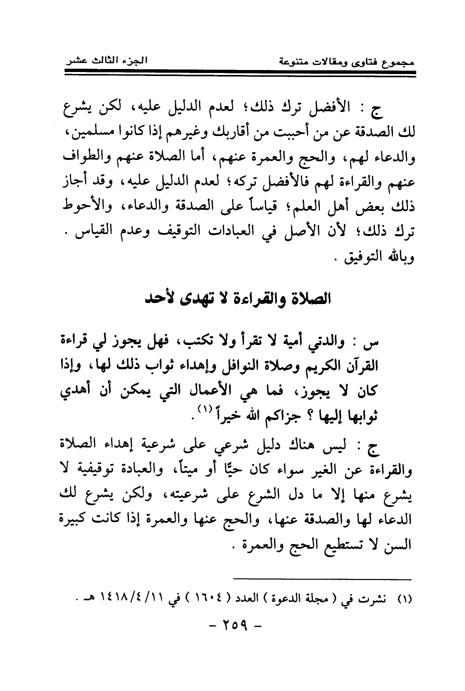 الصلاة والقراءة لا تهدى لأحد