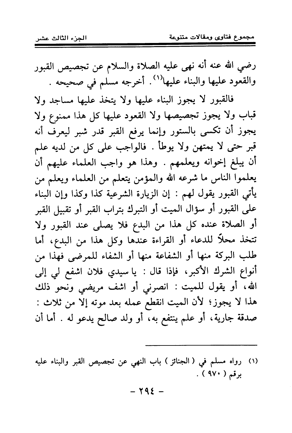(¬1) رواه مسلم في (الجنائز) باب النهي عن تجصيص القبر والبناء عليه برقم (970)