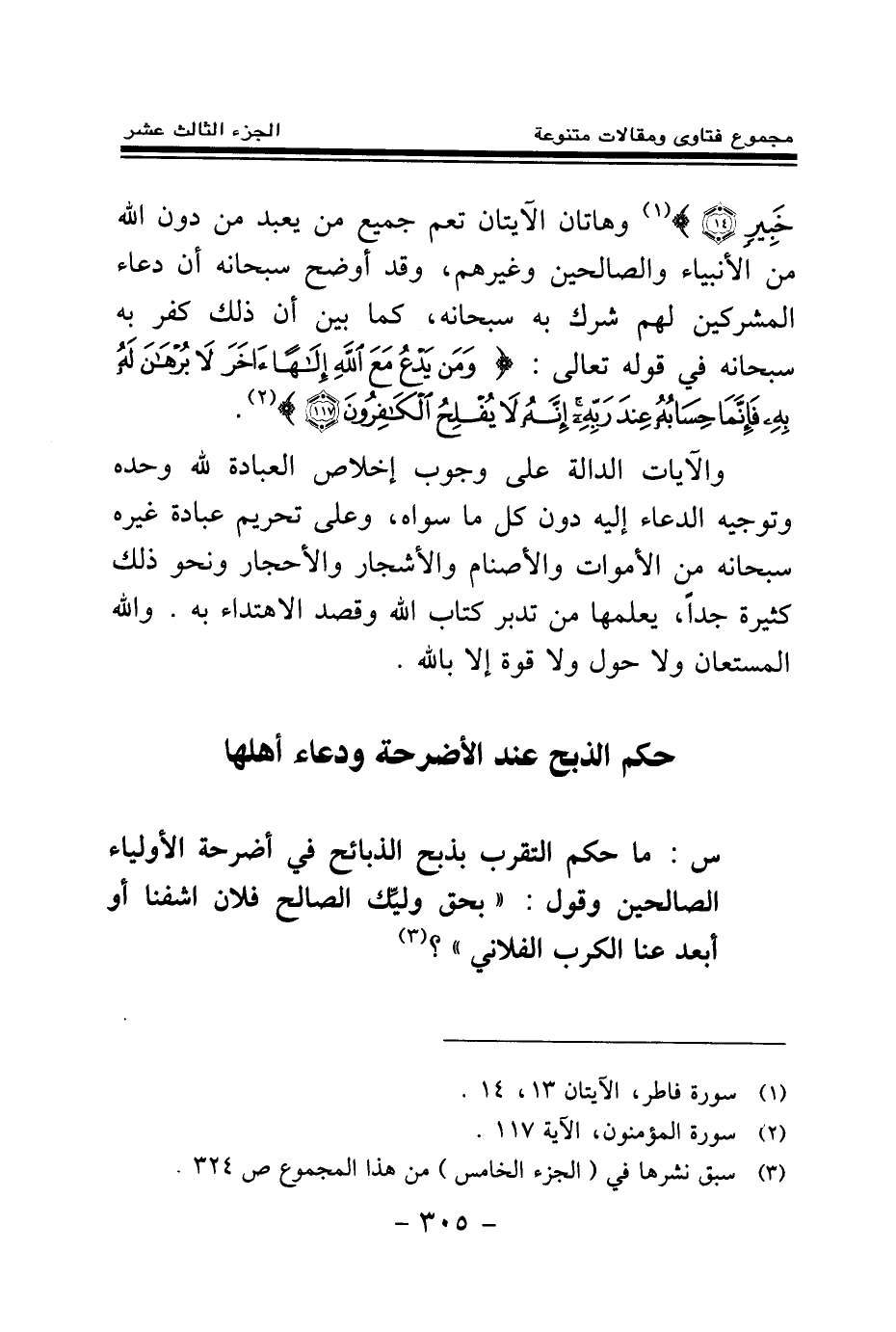 وهاتان الآيتان تعم جميع من يعبد من دون الله من الأنبياء والصالحين وغيرهم، وقد أوضح سبحانه أن دعاء المشركين لهم شرك به سبحانه، كما بين أن ذلك كفر به سبحانه في قوله تعالى: {وَمَنْ يَدْعُ مَعَ اللَّهِ إِلَهًا آخَرَ لَا بُرْهَانَ لَهُ بِهِ فَإِنَّمَا حِسَابُهُ عِنْدَ رَبِّهِ إِنَّهُ لَا يُفْلِحُ الْكَافِرُونَ} (¬1)