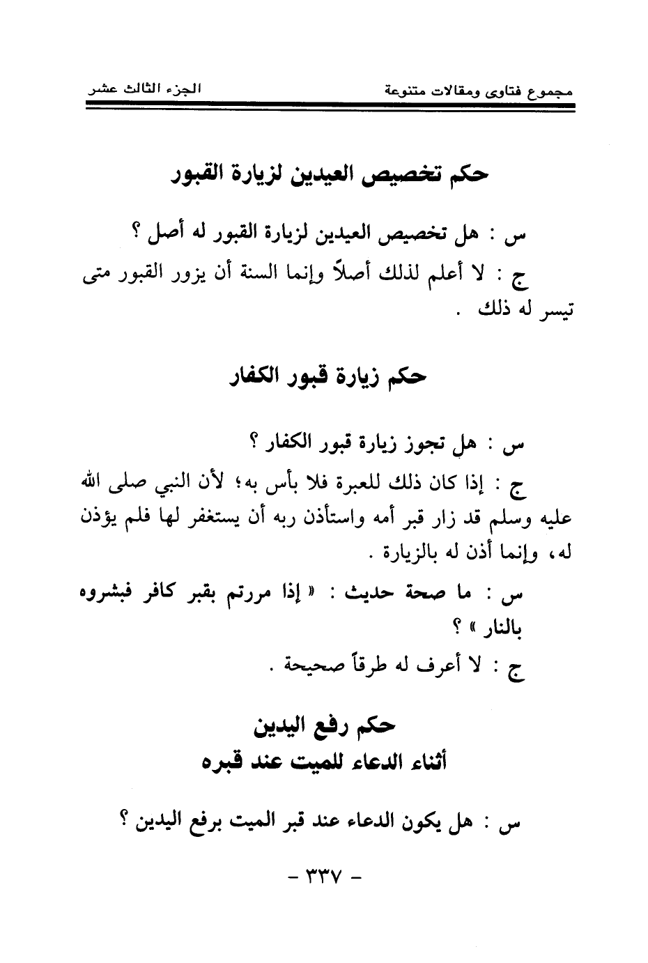س: هل تخصيص العيدين لزيارة القبور له أصل؟ .