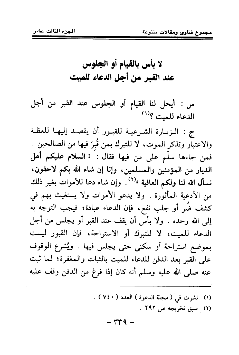 س: أيحل لنا القيام أو الجلوس عند القبر من أجل الدعاء للميت؟ (¬1) .