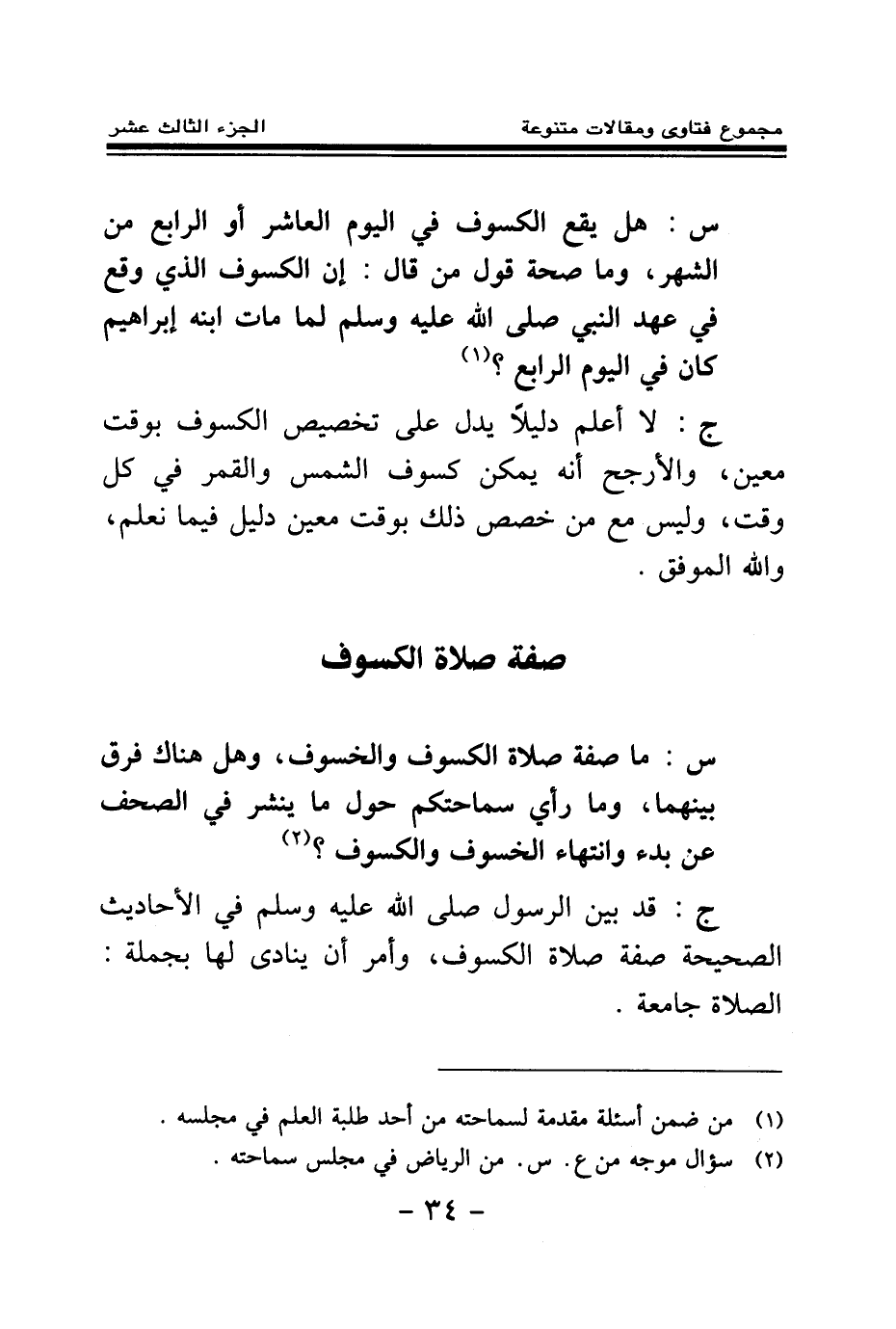 س: ما صفة صلاة الكسوف والخسوف، وهل هناك فرق بينهما، وما رأي سماحتكم حول ما ينشر في الصحف عن بدء وانتهاء الخسوف والكسوف؟ (¬1)